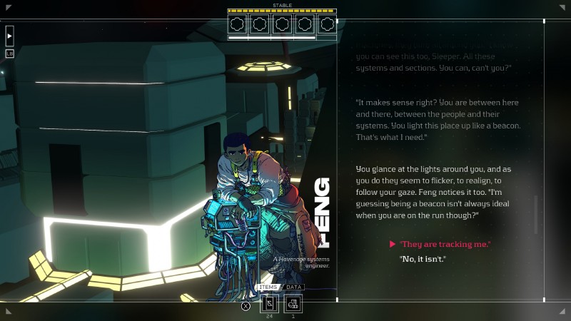 You awake as a Sleeper, a robot powered by a consciousness that belongs to somebody else. In this instance, it belongs to someone that owes mega-corp Essen-Arp money, and to repay that debt, their mind has been digitized and put inside a machine explicitly designed to work for them; that’s the typical life of a Sleeper. You, however, have escaped, and the narrative of Citizen Sleeper begins there, unfolding as you learn to survive and thrive.