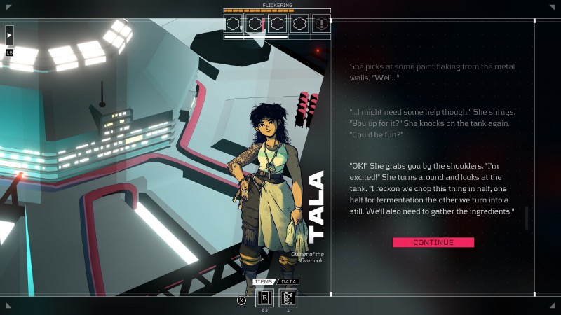 Over time, I overcame these challenges. Little by little, I earned enough money that I could spend less time obtaining medicine and food and more on actually completing objectives on the horizon. By the end of Citizen Sleeper, I stopped thinking about money, and I was instead focused solely on helping the NPCs around Erlin’s Eye that had become my friends and, in some cases, my family. I loved how this narrative arc felt personalized to me because everything that happened resulted from how I chose to use my dice over the dozens of cycles I lived through.