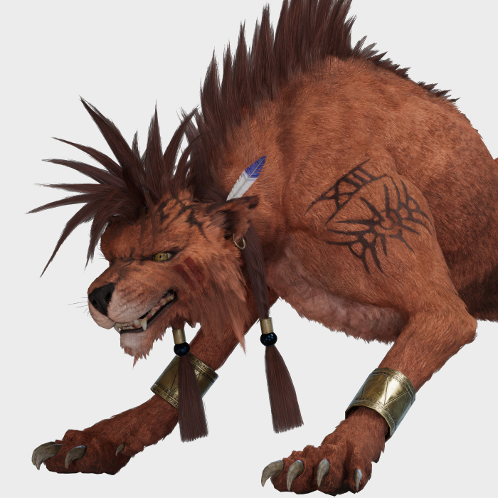 Dai Suzuki: Red XIII and Cait Sith’s entire body is also rendered by the placement of many hair cards* Since their fur is one of their unique characteristics, it was necessary to not only just let their hair cards grow, but also to pay attention to the flow of the fur. Their blocky appearance is adorable in the original too, but don’t you just want to pet the new Cait Sith?