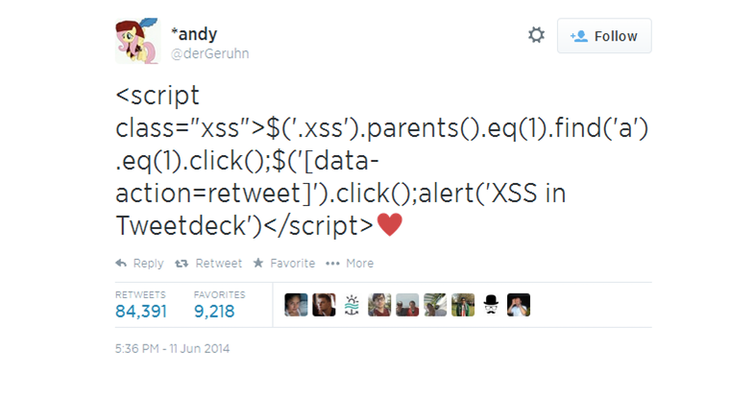 The TweetDeck hack was about as simple they come, it just exploited a flaw that had been overlooked in testing. As Florian himself pointed out, he should never have been allowed to introduce his loved-up code in the first place.