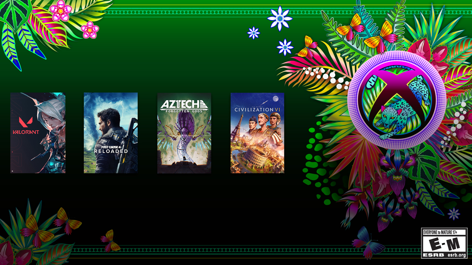In recognition of Hispanic Heritage Month, Xbox commissioned artist Catalina Estrada to design the artwork for this year’s campaign. Catalina is a Colombian illustrator and pattern designer living in Barcelona. She expressed her cultural heritage through the diversity of the rainforest which houses a myriad of cultures, species, and ecosystems to create a unified whole. The vibrant flora in the illustration represents not only the lush beauty of nature, but also the colorful traditions, art, and contributions of her community. Each swirl of color is an homage to the folklore, traditions, and stories that have shaped her Colombian and broader Hispanic identity. She is also inspired by cultural values of kinship and resilience. “Hispanic Heritage, to me, is a vibrant and ever-evolving celebration of diversity, unity, and the enduring beauty of our culture. It’s a time to pay homage to our ancestors, embrace our traditions, and create art that reflects the richness of our heritage,” Catalina reflects.