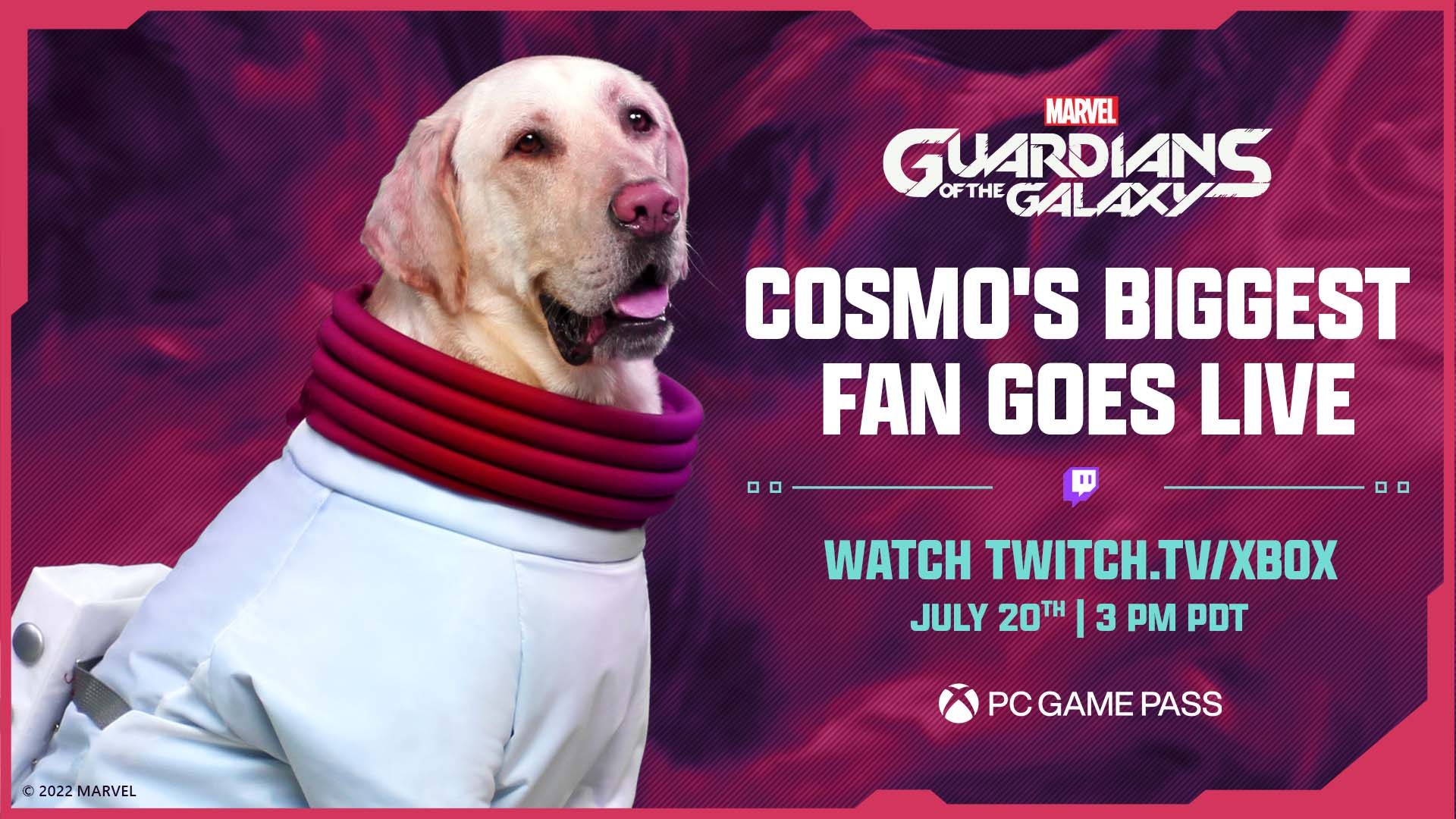To celebrate Marvel’s Guardians of the Galaxy being available with PC Game Pass, we are hosting a live playthrough of the game with Cosmo the Space Dog’s biggest fan, an adorable labrador retriever named Milo. Tune into the Xbox Twitch channel on July 20 at 3 p.m. PDT to join our cosmic adventure and raise money for SPCA International.