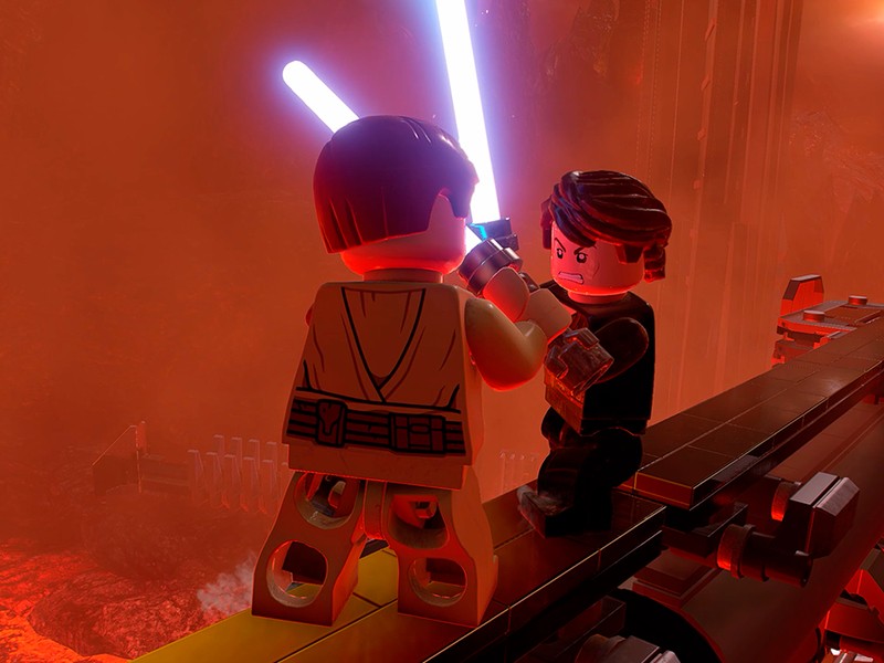 For the first time in a Lego Star Wars game, the galaxy can freely be explored when planets are unlocked by completing episodes. TT Games’ artists did a phenomenal job recreating these planets; each is teeming with life, vivid details, and plenty of fan service. Tatooine’s sprawling Mos Eisley spaceport is densely packed with aliens and vehicles and feels distinctly different than a desolate location like Hoth. All of these locations blend realistic backdrops with clever brick creations that players can interact with. The atmospherics and lighting found in many of these places are particularly impressive. The haze that accompanies Leia’s meeting with R2-D2 on the Tantive IV looks fantastic, and smaller details like a lightsaber’s vibrant glow reflecting off surfaces – including the plastic head of the character wielding it – is another nice touch.