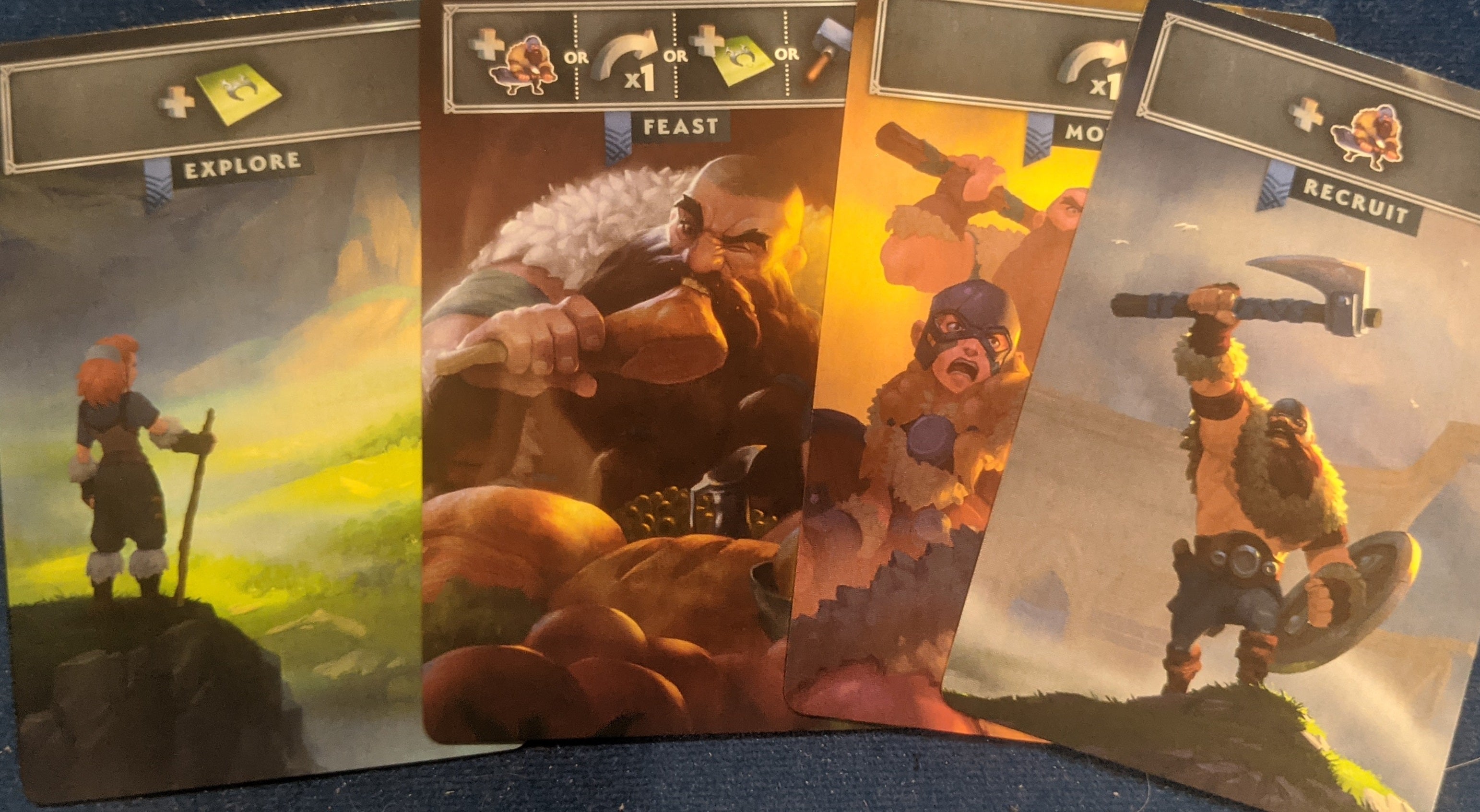 Ultimately, its greatest achievement is in capturing the contrast between wonder and scarcity of the digital Northgard. This is not simply attained with the struggle for fertile land as framed through exploration and conflict, but also through its restriction on army size. You must feed your troops each round, which creates downward pressure on expansive armies and allows for a natural boost to players who have received a beating. This is also how it models the video game’s harsh winter season.