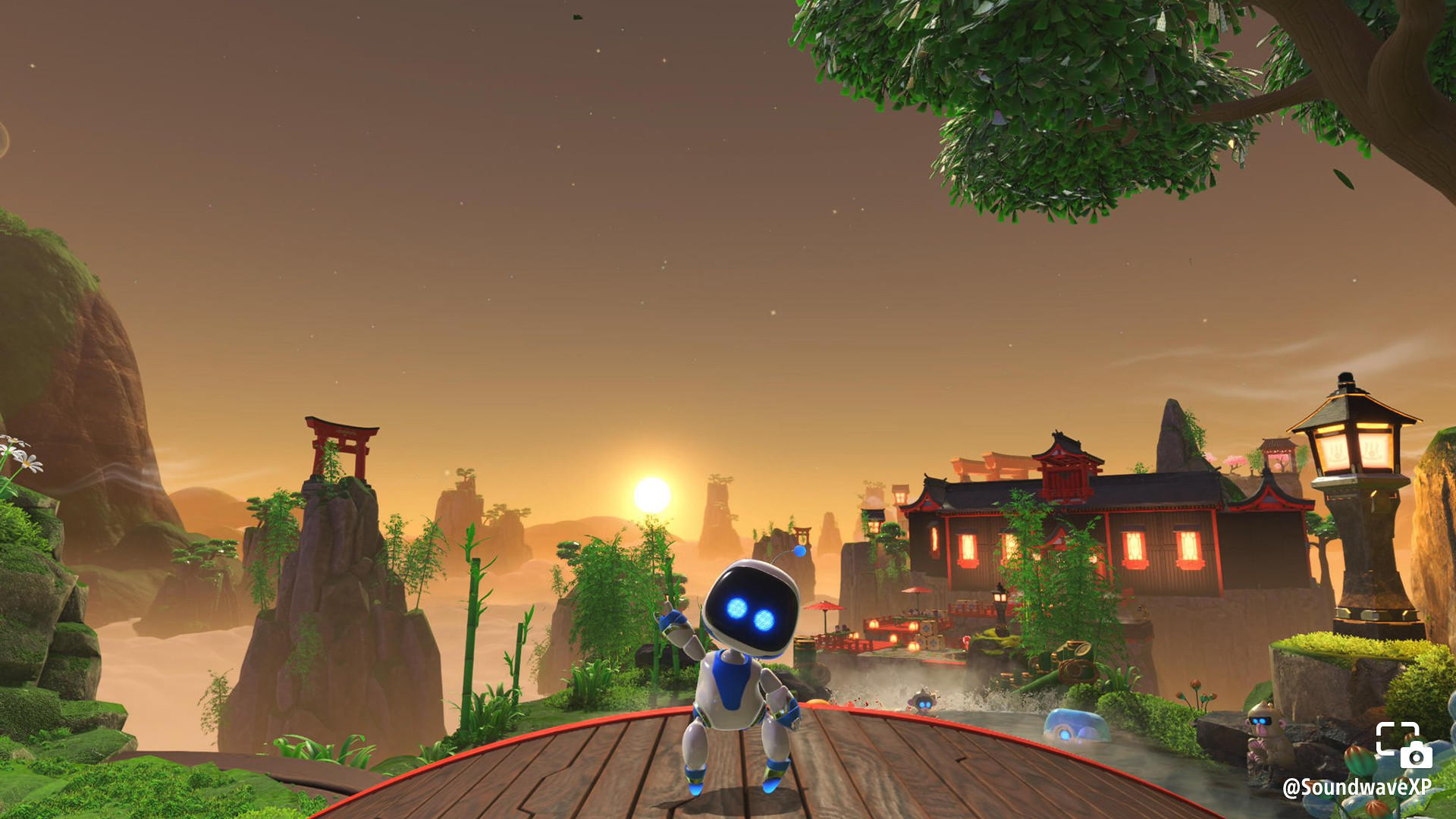 SoundwaveXP shares a level featuring a Japanese-style bathhouse and mountains.