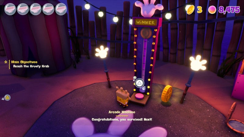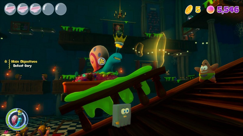 When I’m not fighting against jelly creatures from the multiverse, I’m collecting jelly scattered around each level and within tiki crates, which I use to purchase one of a couple of dozen costumes, or I’m tracking down gold coins, golden spatulas, or some other item. Getting through each level’s main objectives is a breeze – go here, do this, and fight a boss at the end. But side objectives from various Bikini Bottom residents give reason to jump back into each level to collect more, and it’s here I found the most challenge. I do wish more of this challenge was present in the main objectives, though.