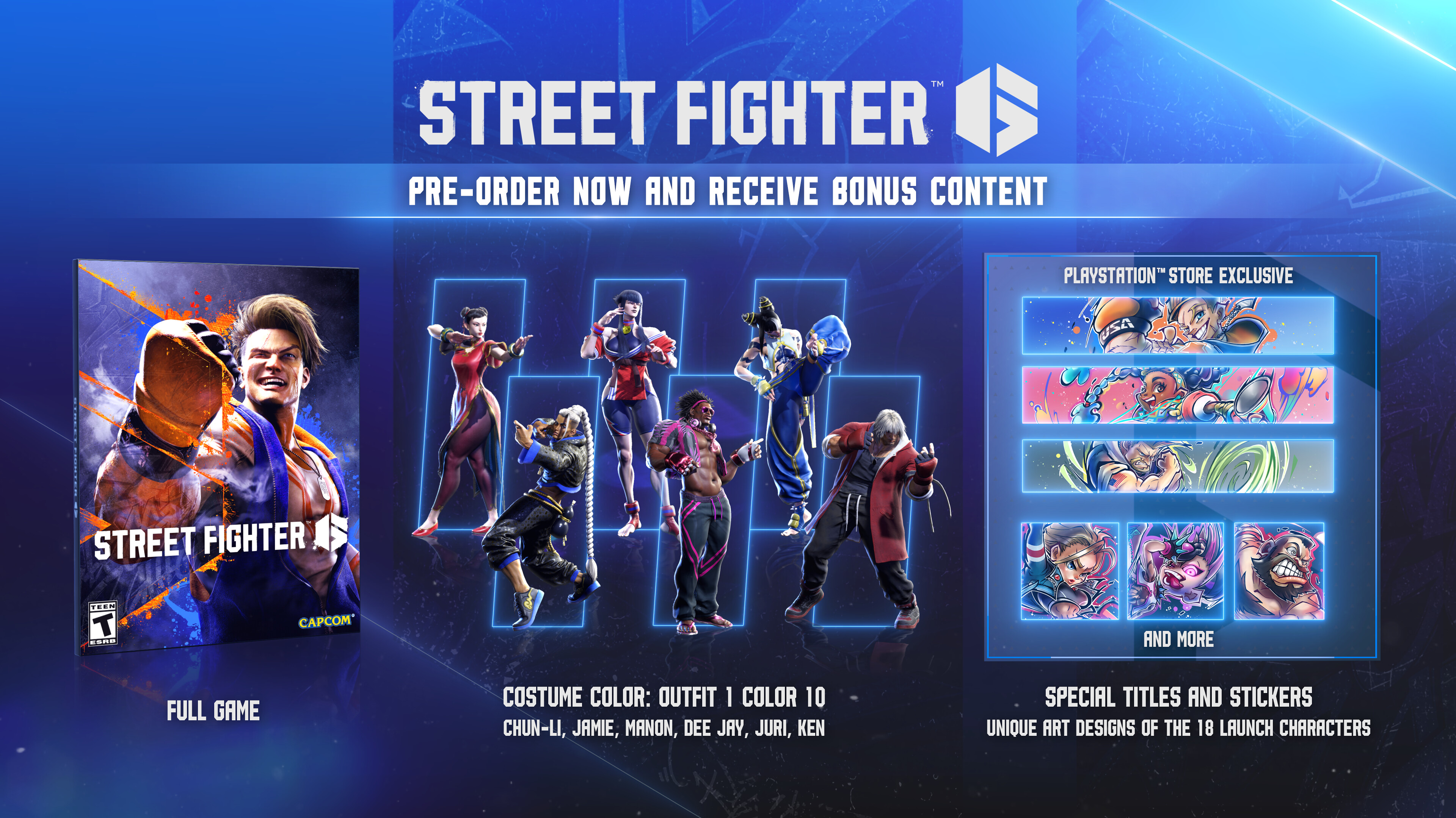 If you haven’t already, watch the Street Fighter 6 Showcase to take in the cityscape because it’s almost your time to hit the streets. Street Fighter 6 launches on June 2 for PS5 and PS4! Pre-order now for Outfit 1 Color 10 for Chun-Li, Jamie, Manon, Dee Jay, Juri, and Ken – PlayStation Store pre-order offers an extra bonus of 18 Special Titles and Stickers.